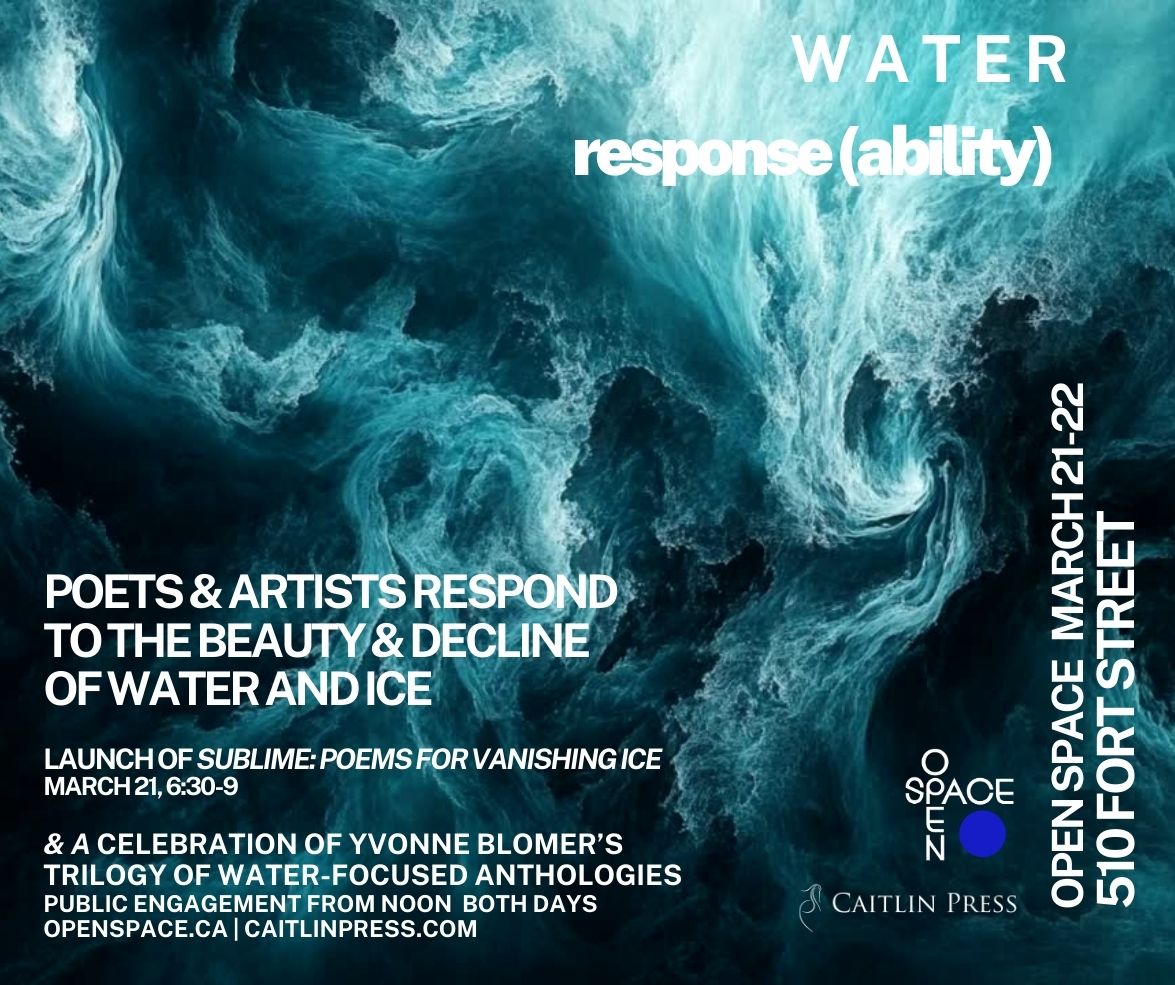 The amazing Yvonne Blomer has completed her massive editing project – a trilogy of poetry anthologies about water – Refugium addressed concerns about our oceans; Sweet Water, the watersheds; and now Sublime: Poems for Vanishing Ice makes its debut (with snowcones!) on World Poetry Day (March 21) and (March 22), at Open Space. The launch days include joyous mingling, workshops, and lots of other stuff. Here’s the story so far – hope you can join us!