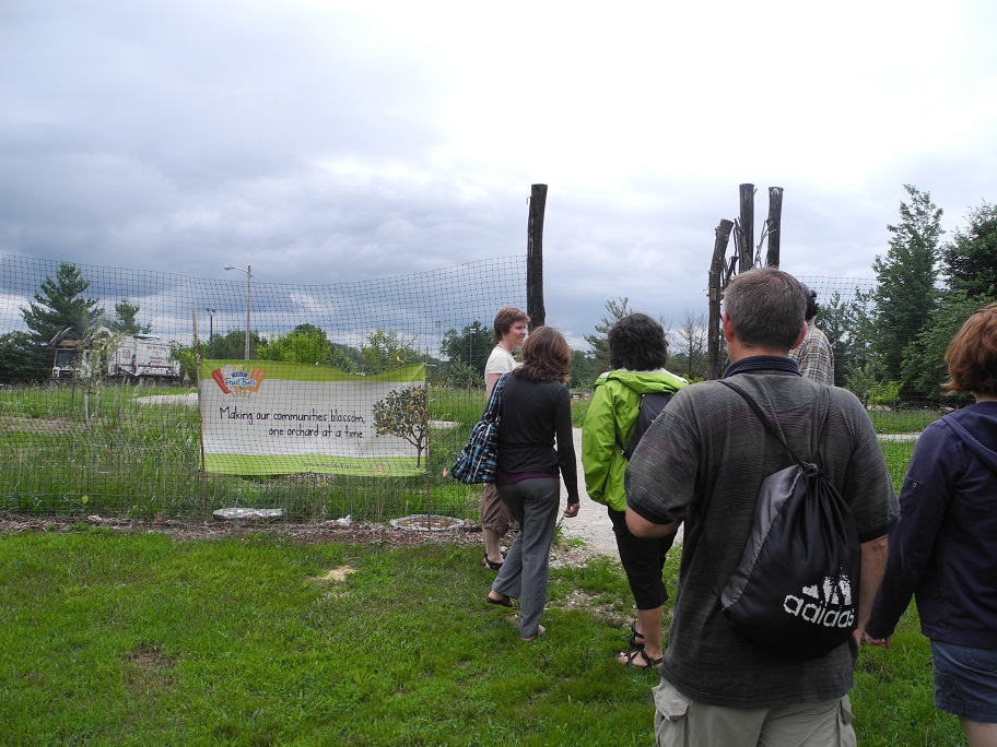 is the choice of activities slotted in to highlight the environmental features of the host region. My Friday afternoon pick was a tour of the Bloomington Community Orchard. The 44-variety organic orchard was planted last October, so it will be a couple of years before it’s bearing fruit (although there are berry bushes which will keep volunteers interested until then, perhaps).