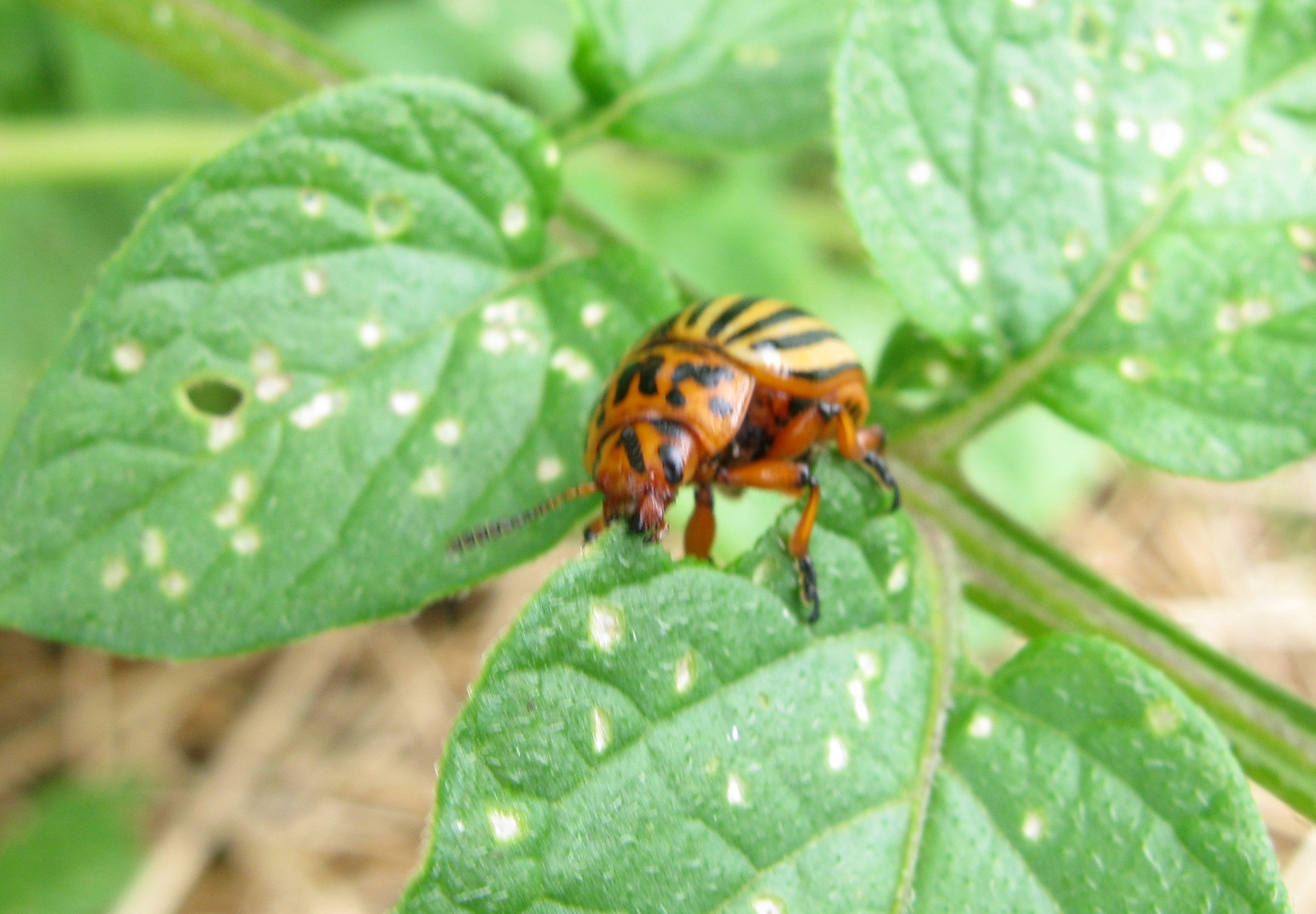 as well, where a few people were pottering around on a Friday afternoon. Things were looking pretty healthy, despite a lot of Japanese beetles sunning themselves on corn leaves; a reminder that community includes shared pests… like this potato beetle in its striped pyjamas.