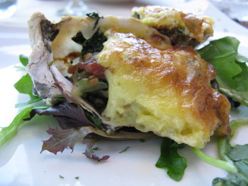 We supped one night at Le Villa, where the (Alberta) lamb chops (why oh why do they insist on raising our hopes and calling them a rack??) were exquisite in every way. I had ordered the tasting menu, so prefaced them with a pair of oysters Rockefeller (they were ok: I like Ferris’ even better, though it’s unfair to compare a prairie restaurant with a West Coast one) and concluded with a strawberry Grand Marnier crepe which was unremarkable, and perhaps even an intrusion after the lamb. But such is the fate of the taster, and I do make my sacrifices carefully.