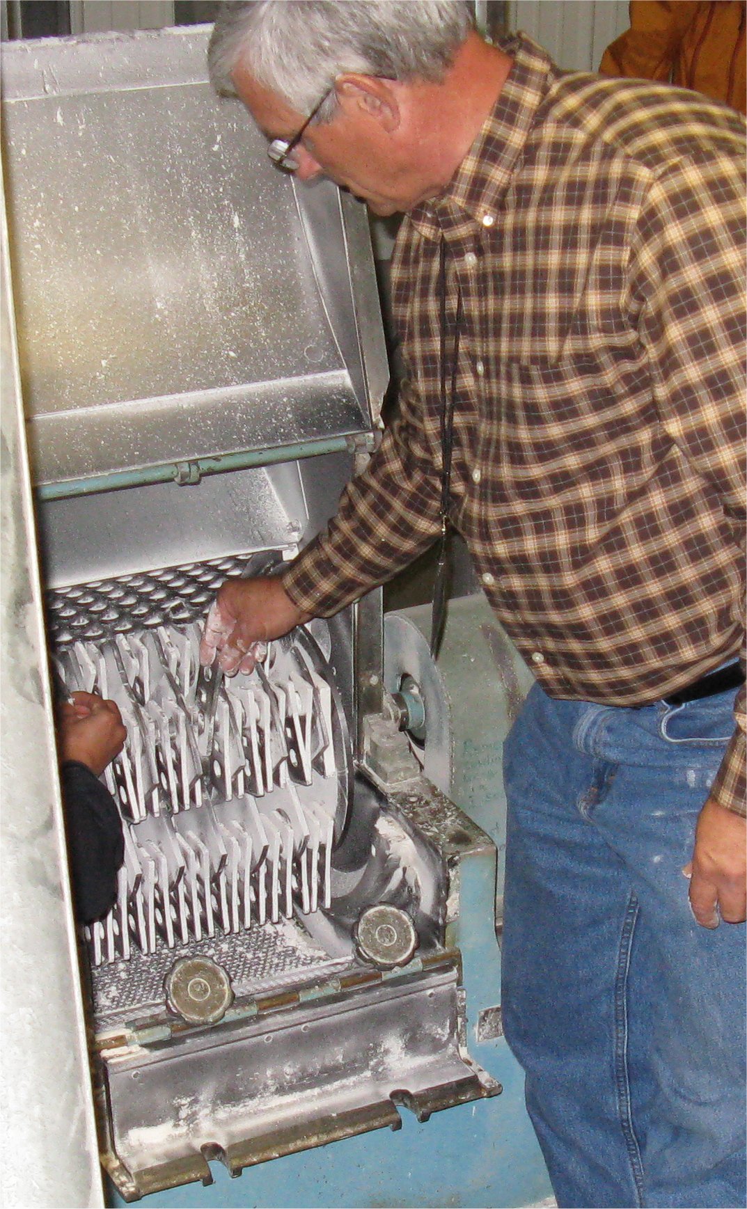 Sorting the greens; the bowl on the left has asparagus fern fiddleheads; the one on the right has frilly beans.