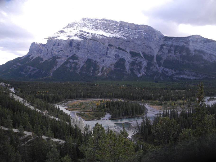 The Hoodoos still stand, shrinking daily I guess. They started life with limestone hats but have apparently lost those along the way. And Tunnel Mountain (which has no tunnel) was busy with walkers, including a lot of young women with babies strapped to their backs; it must be one of the places that local new mothers go to retrieve their waistlines and catch some stunning views of Banff and the Bow Valley. Fortunately the path (and the trail we take to Banff townsite) has been free of cougars, although we have heard there are three of them in the area who are duking it out for supremacy. A grizzly was also seen not far away a few weeks ago.