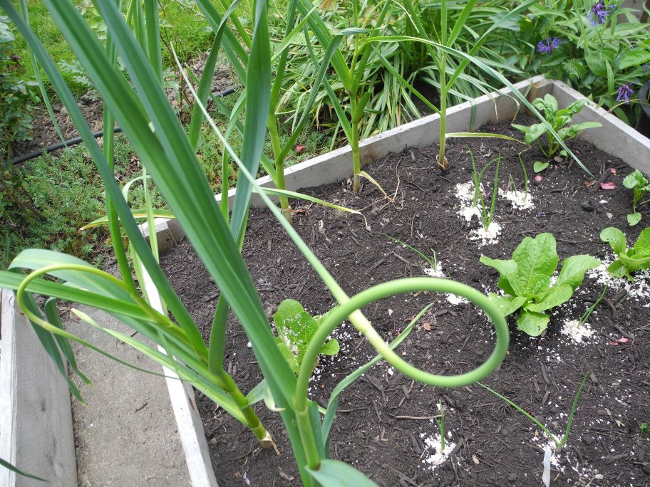 but if it does it looks unsightly and garlic producers can’t sell it. If you let it go, it will affect the size of the bulb and eventually cause it to rot. It’s a particular hazard in community gardens where it can spread quickly from bed to bed, so community gardeners need to have agreements in place to control it. I saw this lot in a James Bay garden last year and suspect all the garlic there will be infected this year.