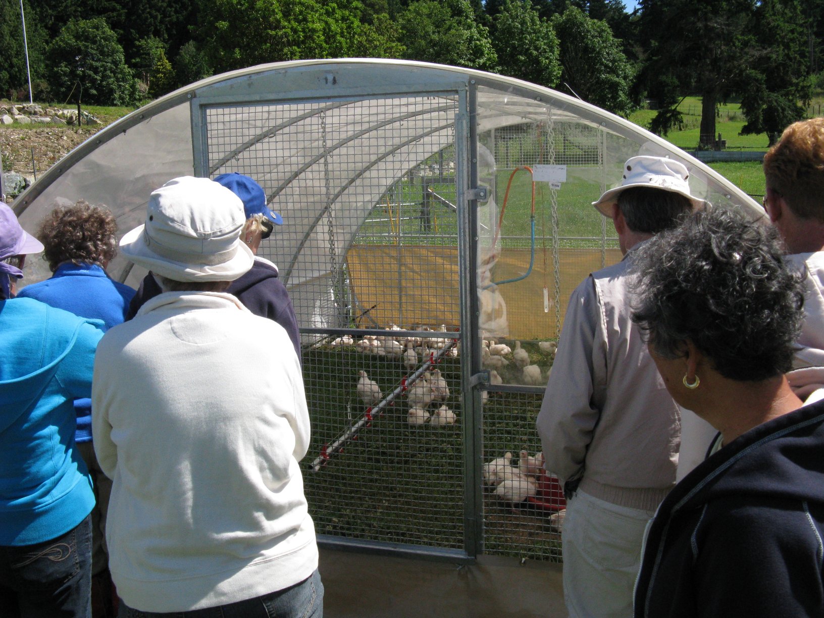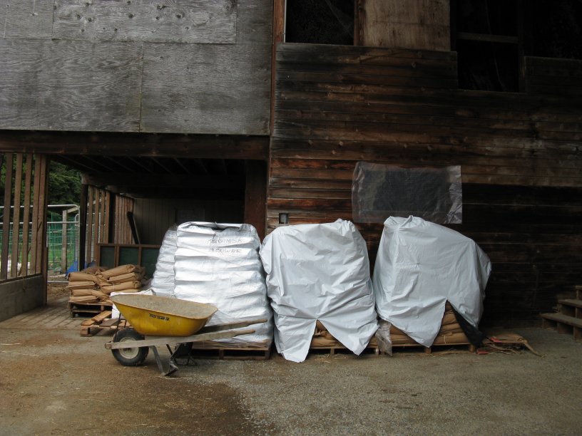 there is no organic feed producer on Vancouver Island, they must have it shipped from the mainland by ferry. Like any Islander who thinks about food security, they are conscious of the fragility of their supply, so they try to keep a reasonable reserve in store. Because organic feed is more expensive than conventional, this means quite a substantial capital outlay, at about $1000 a pallet.