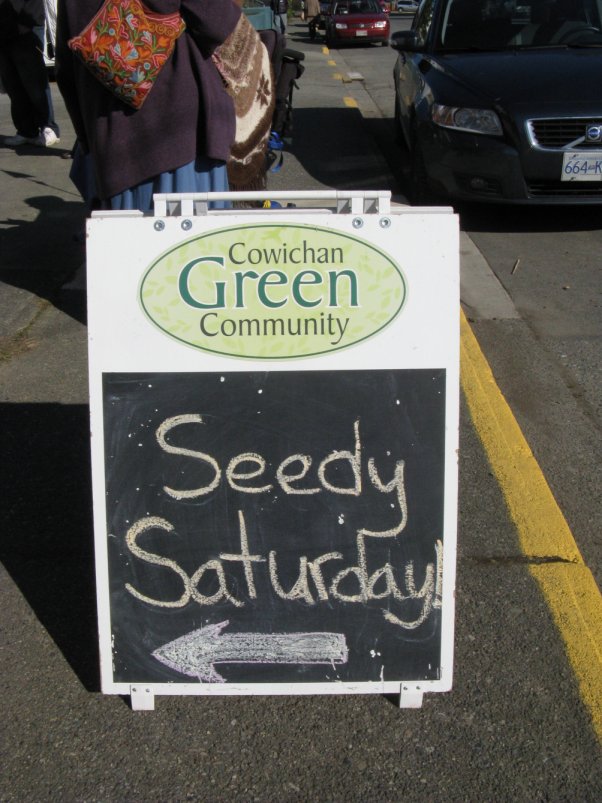 It was an intense ag-food weekend starting with Seedy Saturday at the Victoria Conference Centre. Many were the crowds, nigh on as numerous as the seeds on sale, and much was the diversity on offer. I was helping out at the CRFAIR stand, conveniently situated next to Jacob of Salt Spring Sprouts & Organic Mushrooms, who is always generous with his samples. I also sampled some excellent banana pancakes made by chef Joseph from his bean flour pancake mix. Managed to escape with only one package of seeds, this one from GTUFer Kendell Nielsen, PAg, who had dropped off some mini-spaghetti squash seeds that caught my eye. I did not need her giant Jerusalem artichokes though they were beautiful. There was a very busy table of volunteers repackaging the donated seeds, and a large variety on offer (free for trade or $1 a package).
