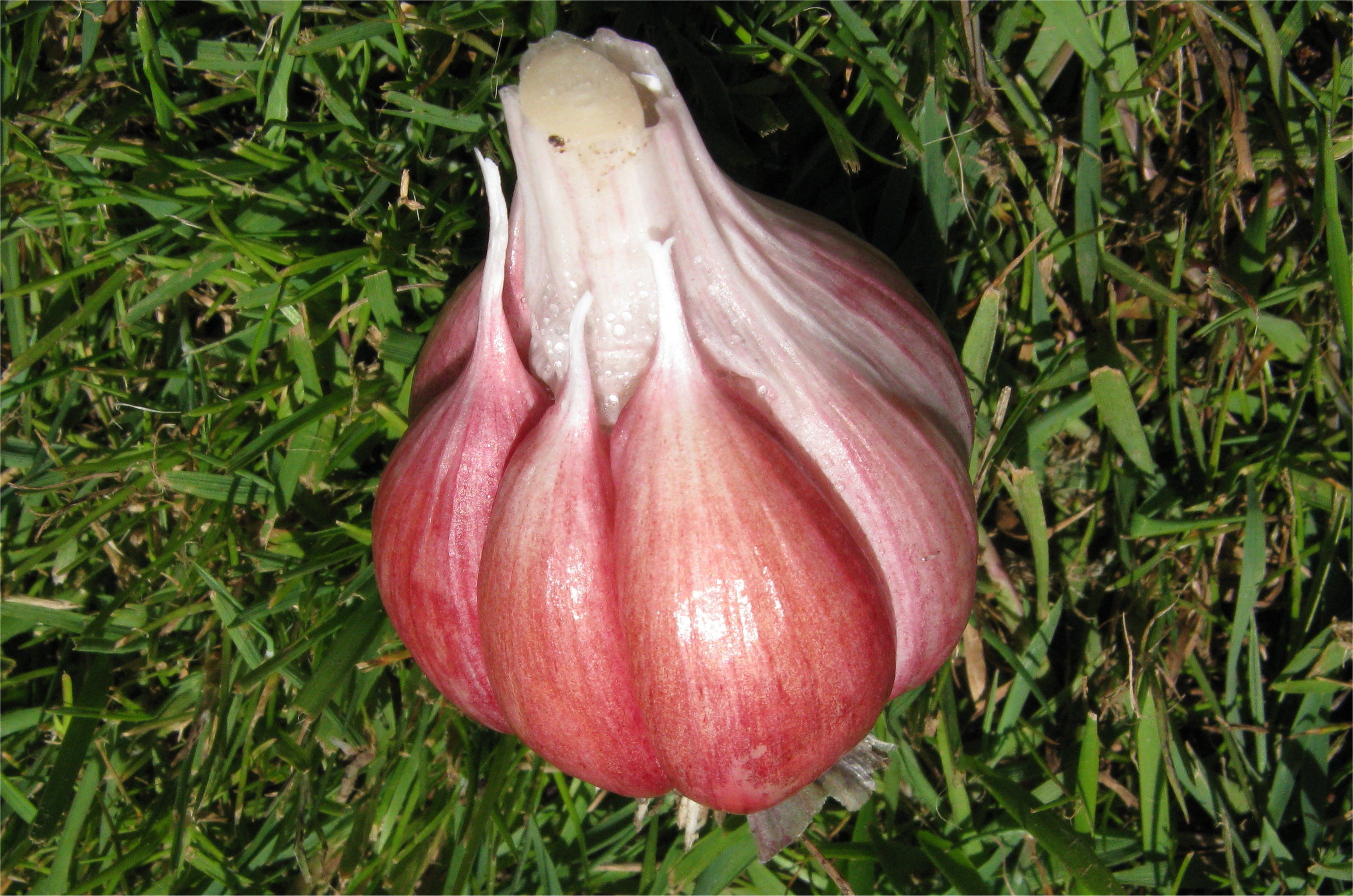 To reduce the spread of garlic rust, infected leaves should be snipped off – whether live or harvested plants – and disposed of in the garbage, not composted. Rust won’t affect the taste of the garlic and in most cases won’t reach the bulb,