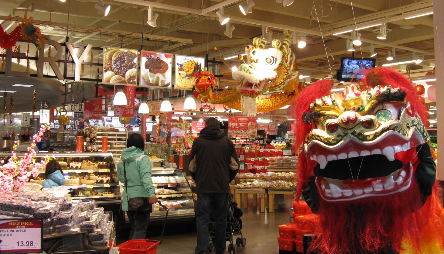 Before I left Vancouver we took a spin around a newish supermarket in West Vancouver: Osaka (the nineteenth store to be opened by T&T Supermarkets) is huge with a mind-boggling selection of just about anything Asian – from soya sauce to rice and noodles, and vast quantities of everything in between. There were large fish tanks offering shoppers live seafood: king and Dungeness crab, lobster and abalone as well as several varieties of oysters, clams and fish, and a bak