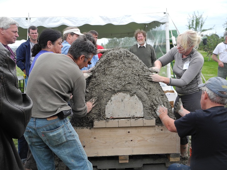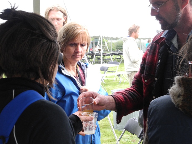 a cider and goat cheese tasting, followed by abundant pizzas fresh from the mobile wood-fired ovens, and salads of wheatberries and donated vegetables – carrots and beets – that were roasted in the ovens, followed in turn by seriously good cookies from the