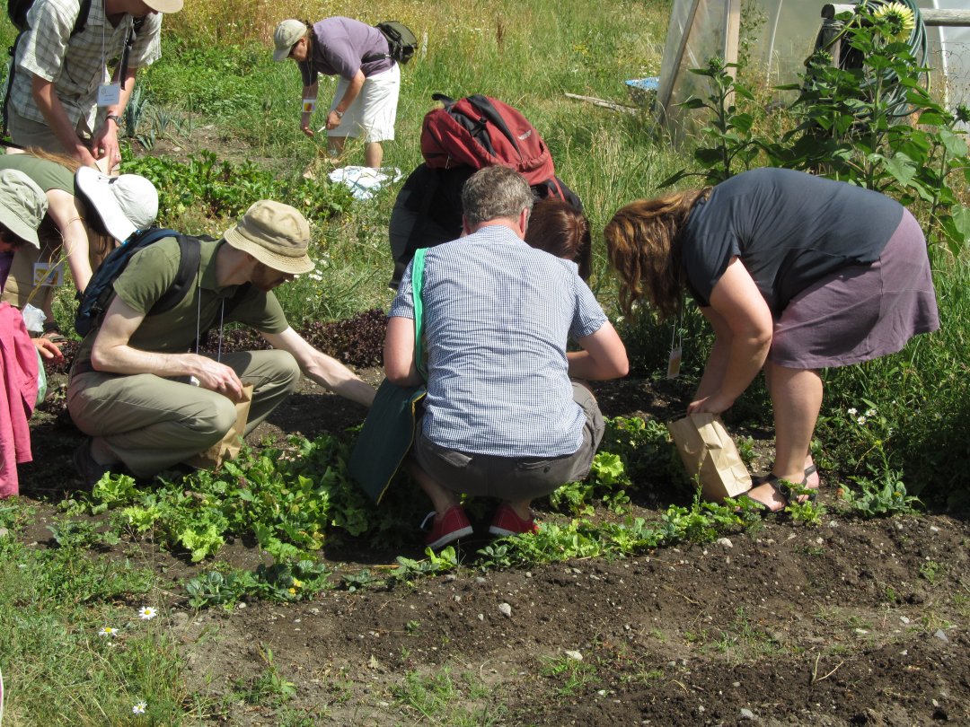 The conference got properly underway on Thursday, commencing with an afternoon reading by Cornelia Hoogland, who offered us her essay “Sea Level” which had been finalist in the CBC Nonfiction contest this year, and which opened things up with thought and discussion around wilderness, technology and human-animal boundaries.We then had the opportunity to take a midday stroll down to Preservation Farm, an organic farming project at UBC Okanagan, where ALECC had thoughtfully purchased the harvest for our lunch: all we had to do was go and pick (or pull) it.