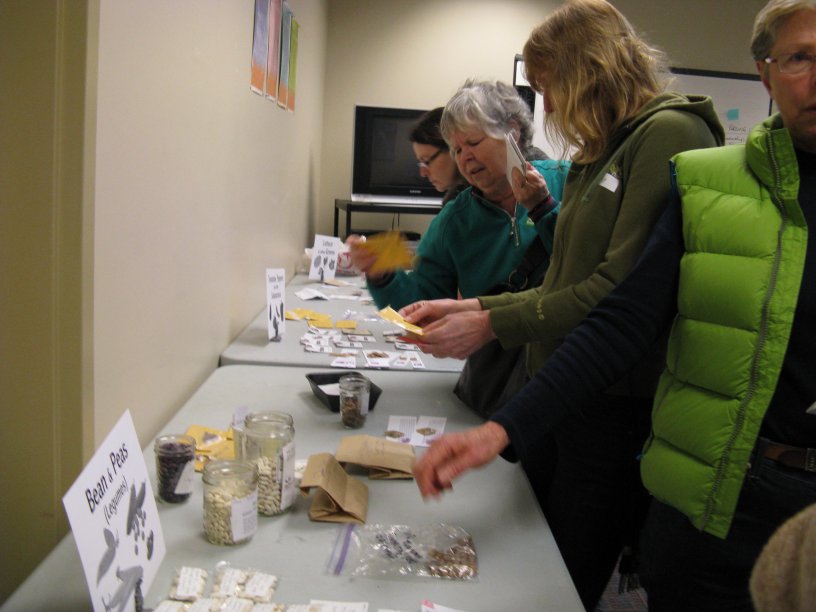 For the past three years, the Gorge Tillicum Urban Farmers have met in January, ahead of the larger “seedy” events in Victoria and elsewhere, in order to swap and share our locally grown seeds. It’s one of my favourite things about this neighbourhood’s delightfully mixed group of gardeners, chicken-lovers and food geeks. There’s no guarantee the seeds will sprout, no fancy packaging and no cost. The seeds mostly come from plants that GTUF members have grown in their own gardens and then saved, so are tested and adapted to our local climate. This gives them a big advantage over seeds purchased from major seed producers, who may be in a completely different growing zone from the consumer. Our seeds also come with an opportunity to tap the knowledge of the producer: could be someone with years of skill, or maybe just a delighted first-timer.This year 60 of us were joined by affable seed guru Dan Jason, the visionary behind Salt Spring Seeds