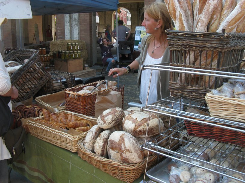 There were food tickets on sale – a very reasonable $1 per ticket gave you a sample from most booths, stocked with everything from “kaleslaw” to cream puffs, and I proved to my own satisfaction that it was possible to eat extremely well for under $10. The barbecued salmon and boiled corn stands were mobbed for most of the time we were there; there were tasty treats from the likes of Canoe Brewpub, Bliss, Relish, Choux-Choux Charcuterie, AJ Organics and others…so after taking in all that with a taste of music and lots of sunshine we finally left, sated and laden with produce.