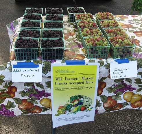 We learned later from the evening’s banquet speaker – an academic whose husband grows flowers and garlic to sell there – that it had been a fairly average day with some 75 vendors and about 8,000 visitors. The sun shone on our visit (but not too much) and we had a happy forage through the wares. Cheese there was, including the Wabash Cannonball, which I believe I’d noticed at Goose t