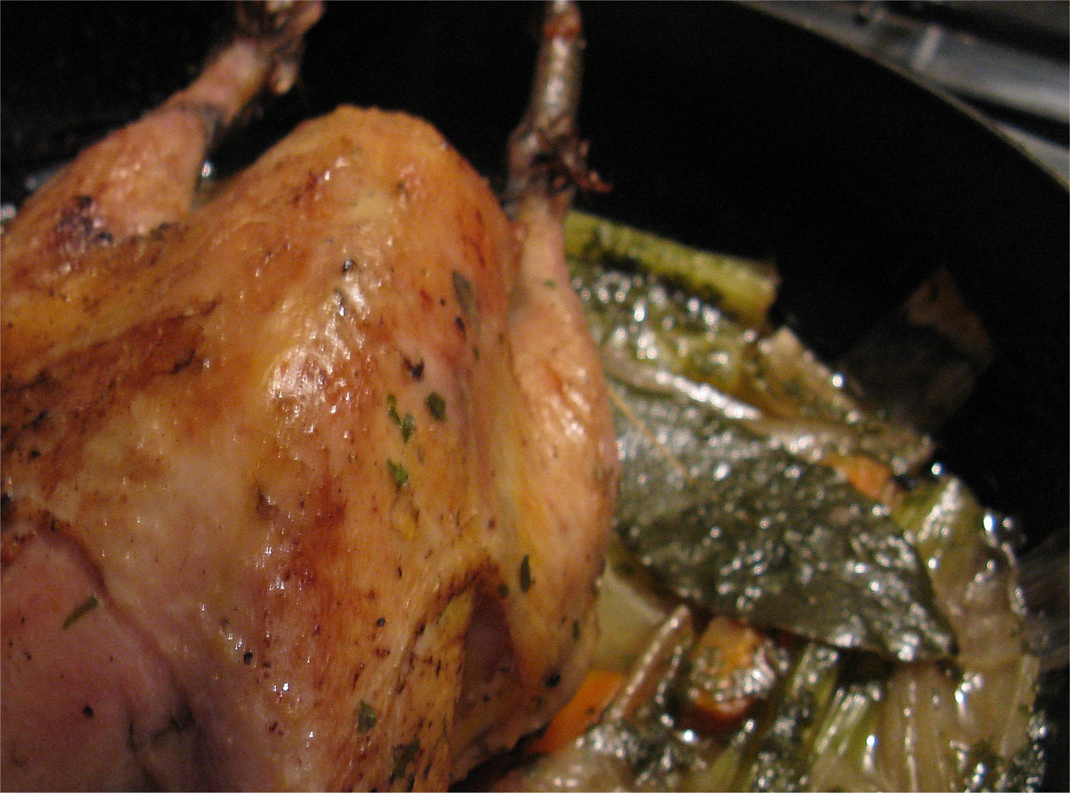 it in wine according to a Katie Stewart recipe. Stewart is revered by many of today’s celebrity chefs including Delia Smith, Sophie Dahl, Hugh Fearnley-Whittingstall and Anna del Conte. The stained old copy of The Times Cookery Book I was working from would not command the full £50+ you’d expect to pay elsewhere, but it has been well loved, and for good reason. The bird was very good – finished with a buttery wine gravy made with beurre manie and pan-fried mushrooms, accompanied by brussels sprouts of course, and some Hugh Fearnley-Whittingstall roasted aubergines and potatoes … best of all I managed not to crack