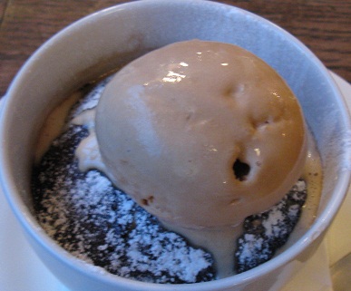 We commenced with potted Suffolk ham hock and very fine toasted sourdough, accompanied by a few darling cornichons and pickled onions, and a pear and Cheshire blue cheese salad sprinkled with toasted pine nuts. We moved smoothly on to a melting featherblade of beef with herbed dumplings. kale mash and tiny roast onions. Thus fortified we were able to take a calm, clear look at the desserts which all sounded spectacular. One of the finest was a hot chocolate pudding with salt caramel ice cream. Just to make sure the chef had chosen the right ice cream to go with this (he had, oh yes he had) we checked out the chocolate and ginger flavours as well, bathing them in warm chocolate sauce for good measure. If this is to be my fate in 2012, bring it on. -