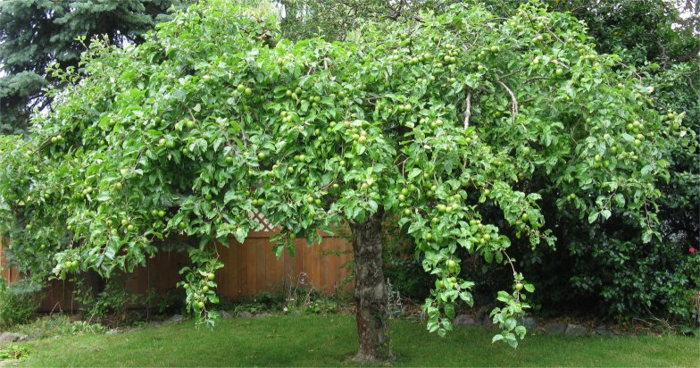 As am I with my apple tree which is laden. Here it is before and after picking a first basket of apples (est. 30 lbs).