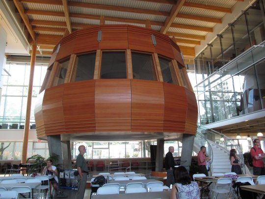 Read Full Post: ALECC 2012 – Space + Memory = Place (days 4&5)Saturday morning we repaired (by schoolbus) to the beautiful spaces at Okanagan College, where the luckiest presenters spoke in the curvy pod at the top of the stairs, but really everything was lovely there, including a fine breakfast of fresh muffins (featuring Okanagan apricots) and lots of fruit.