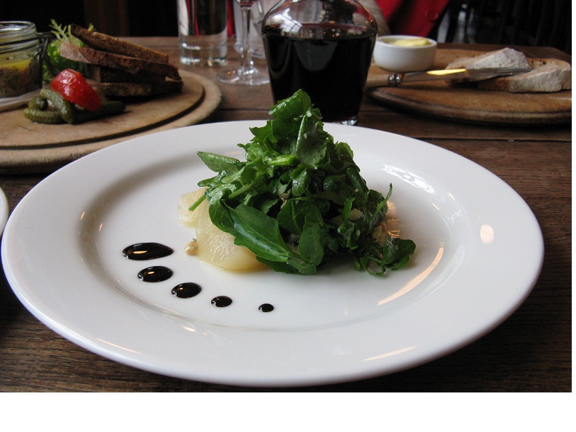 We commenced with potted Suffolk ham hock and very fine toasted sourdough, accompanied by a few darling cornichons and pickled onions, and a pear and Cheshire blue cheese salad sprinkled with toasted pine nuts. We moved smoothly on to a melting featherblade of beef with herbed dumplings. kale mash and tiny roast onions. Thus fortified we were able to take a calm, clear look at the desserts which all sounded spectacular. One of the finest was a hot chocolate pudding with salt caramel ice cream. Just to make sure the chef had chosen the right ice cream to go with this (he had, oh yes he had) we checked out the chocolate and ginger flavours as well, bathing them in warm chocolate sauce for good measure. If this is to be my fate in 2012, bring it on. -