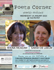 Aldeburgh (1) Aldeburgh Poetry (1) Aldeburgh Poetry Festival (3) Barbara Pelman (1) Barry Dempster (1) BC poets (4) Bert Almon (1) Black Stilt (2) Bologna (1) book launch (4) book launches (1) Borough Market (1) Carla Funk (1) Colwood (1) cooking workshops (2) David Foster Wallace (1) Doug Barbour (1) environmental literature (2) Fanny Bay (2) Feast of Fields (2) fundraising (1) George Melnyk (1) Heidi Greco (1) Jenna Butler (2) Kate Braid (1) Kent (1) Larder (2) Malahat Review (1) Marian Frances White (1) Maxine Kumin (1) Michael Ondaatje (1) Nancy Mattson (1) Planet Earth Poetry (3) poetry (4) Poetry in the Crypt (1) poetry readings (9) Poetry videos (5) Poets in Transit (1) Portland (1) Rochester (1) Salt Spring Island (1) Sandy Shreve (1) Seedy Saturday (2) Sharon Olds Festival (1) Suffolk (4) Susan Alexander (1) Susan Stenson (1) truffles (1) Vancouver Writers Festival (1) Wendy Morton (2) women poets (2) Word on the Street (1) Yvonne Blomer (3)