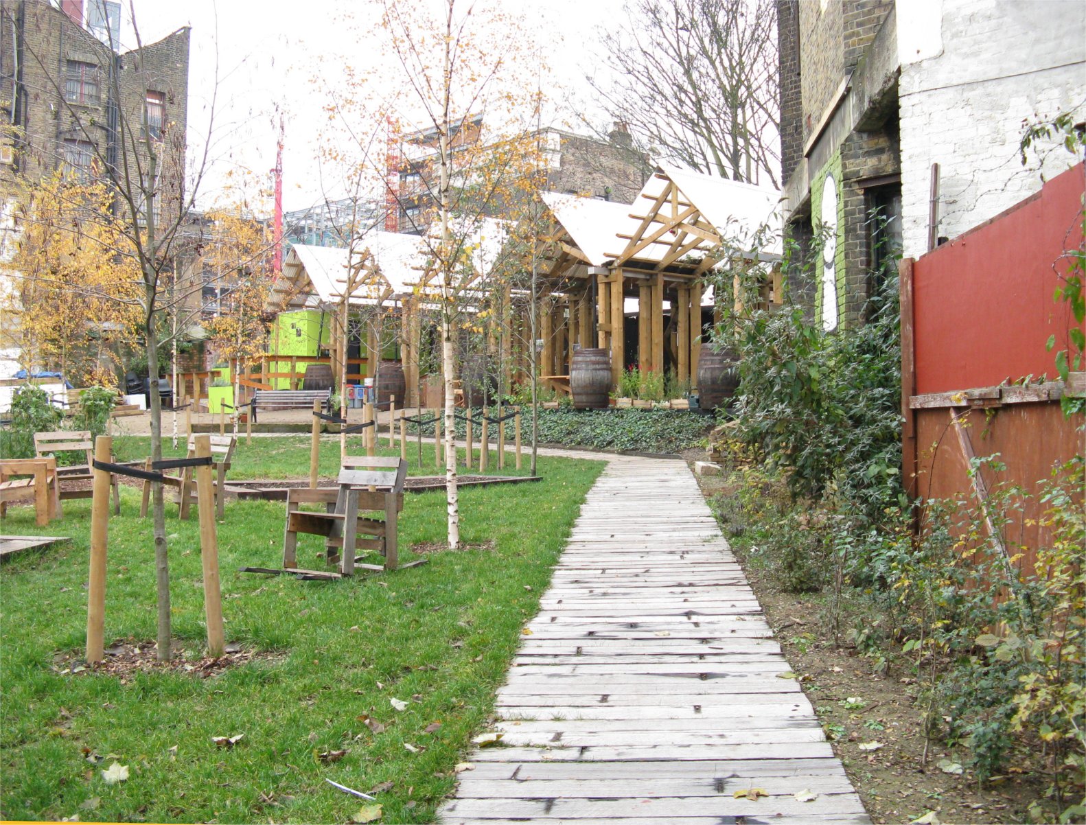 And then there are the chickens on the roof, which sixty years ago were a common feature in London gardens. From their vantage point they can see the tops of double-deckers running along Dalston Lane. There are only four of them, so not a huge volume of eggs expected. They live on a layer of leaf mulch which gives them something to pick through and ends up as a nice bit of compost.
