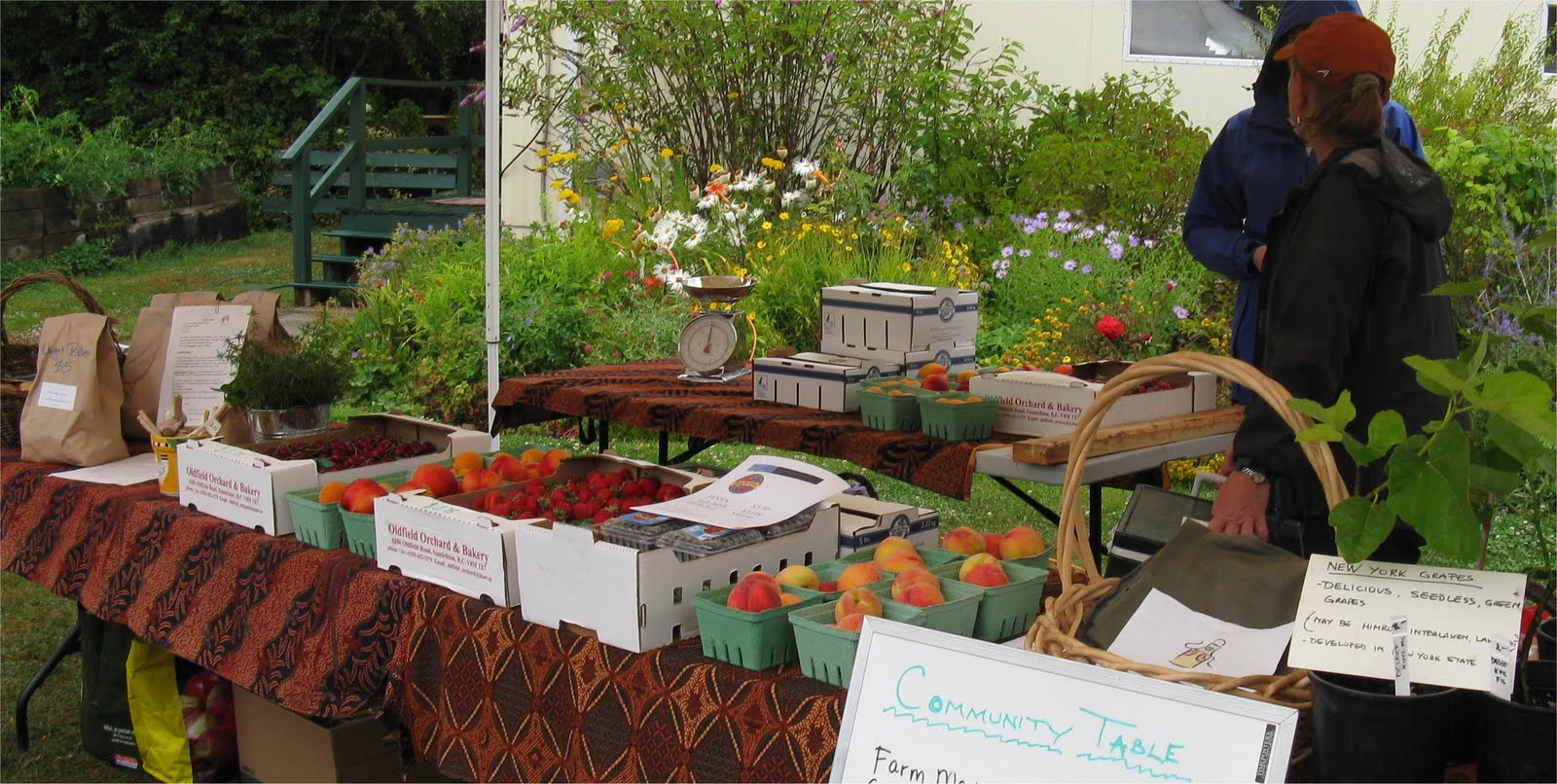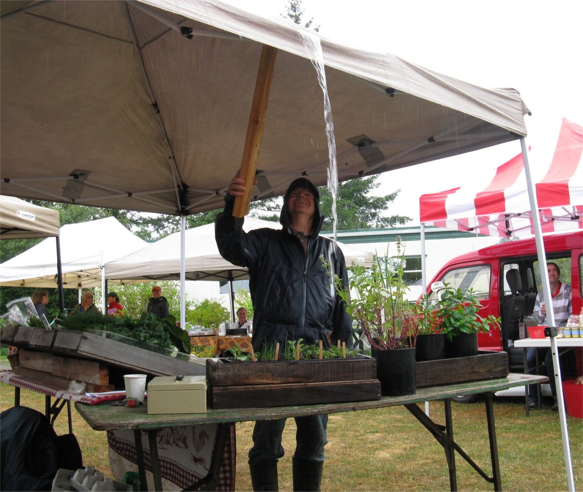 After six weeks of straight sunshine, last Saturday’s rainfall was a pleasure to the gardeners, not so much to those of us being dripped upon at the North Saanich Farm Market, where Slow Food had, for a second year, been invited to set up an information booth.