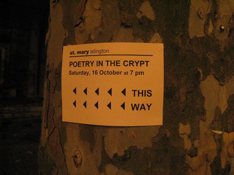 Back in London and what’s a food-loving poet to do but jump off the plane and onto the train and get myself to Islington to catch Poetry in the Crypt. Mike Bartholomew-Biggs