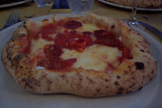 Many of us had the house specialty, which had a thick, chewy crust filled with fresh ricotta, and topped with buffalo mozzarella, fresh tomatoes and salami.