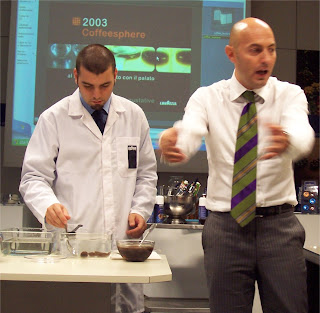 Lavazza has the biggest roasting operation in Italy and the lion’s share of the domestic market, and so it’s important to keep pressing forward to stay ahead of the competitors (…can I resist saying: in the poisonous growth economy we find ourselves in?) and we heard about a few of the new product lines, which ranged from worthy to silly. Many of them were spawned (and as you will shortly see I use the word advisedly) through the company’s partnership with Spanish foam-meister, chef Ferran Adria.
