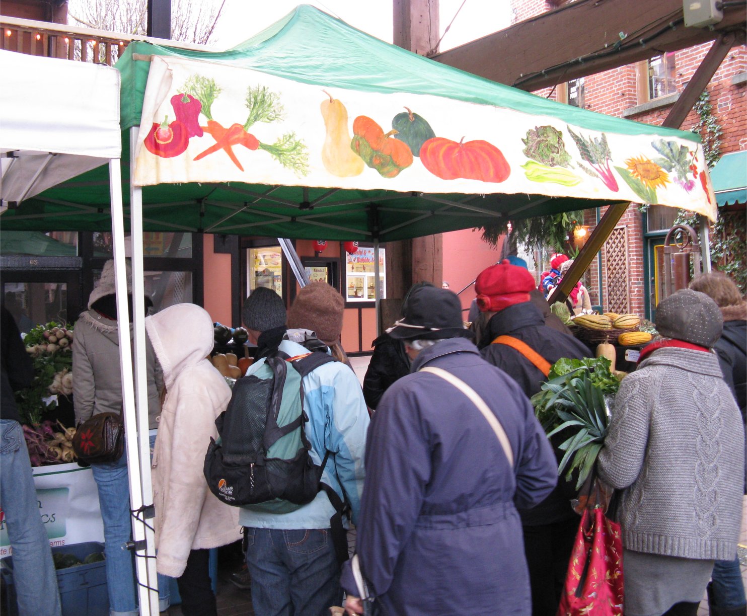 A cold, grey day for the farmers who peopled the winter farmers market on Saturday. It’s a monthly event, happening the third Saturday right through till March in Market Square.