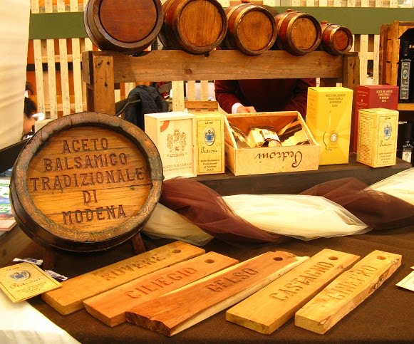 A display of the woods used in the barrels that balsamico tradizionale are aged in:
