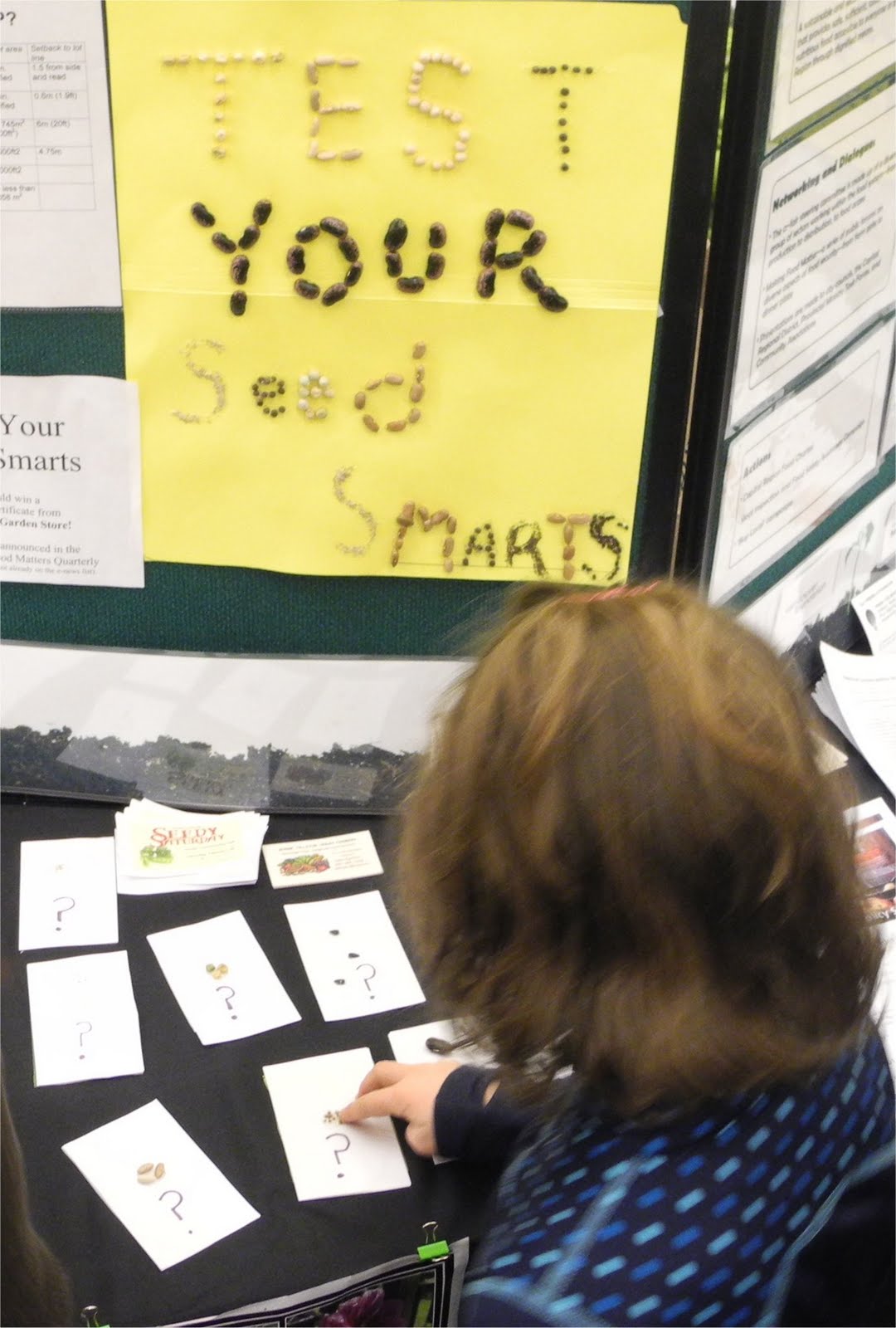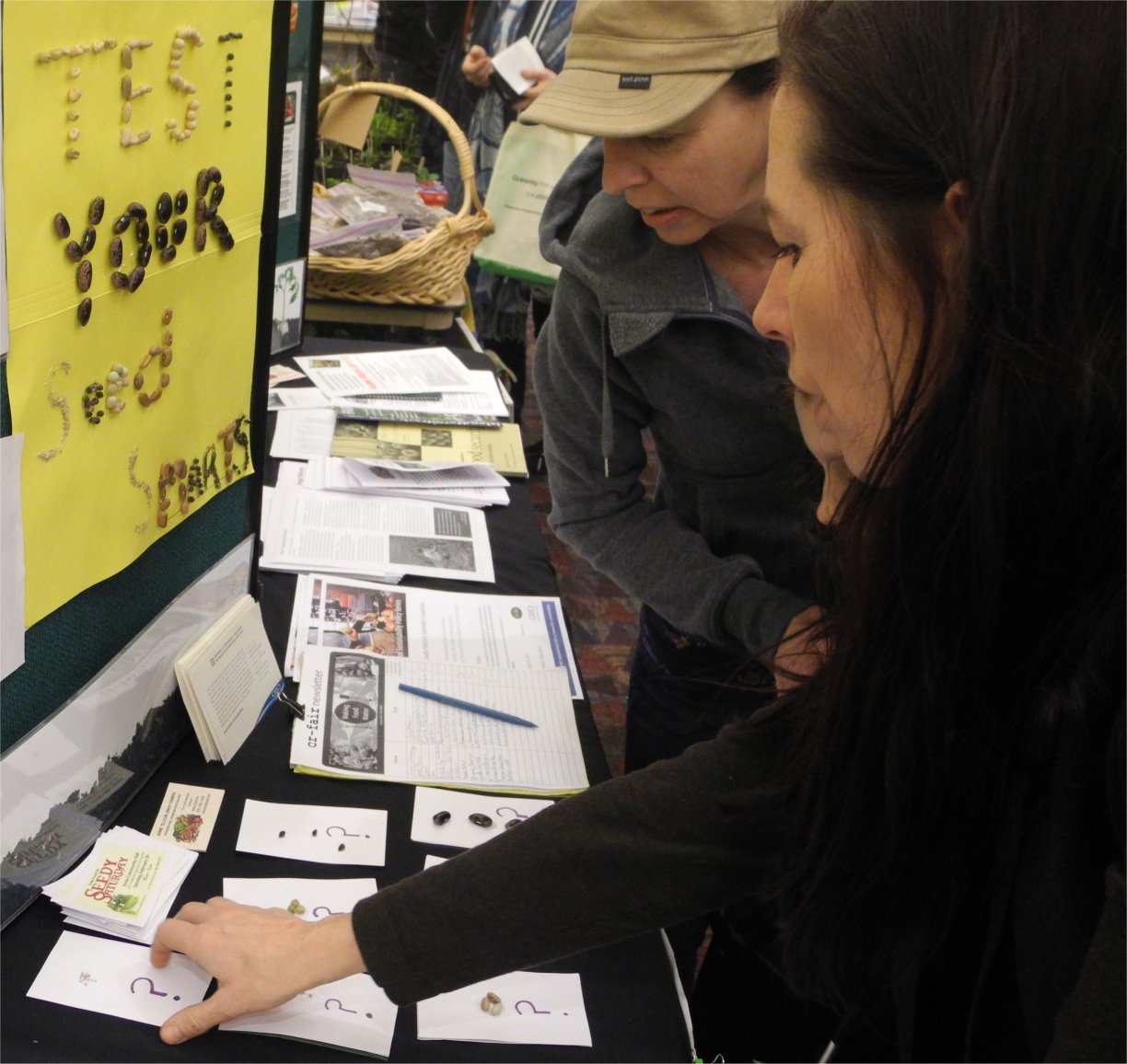 Linda Geggie’s “Test Your Seed Smarts” was hugely popular. A few sniffed they didn’t need to see the back of the card to know what the seeds were, but most who stopped found the self-test highly entertaining,